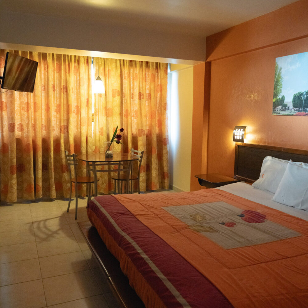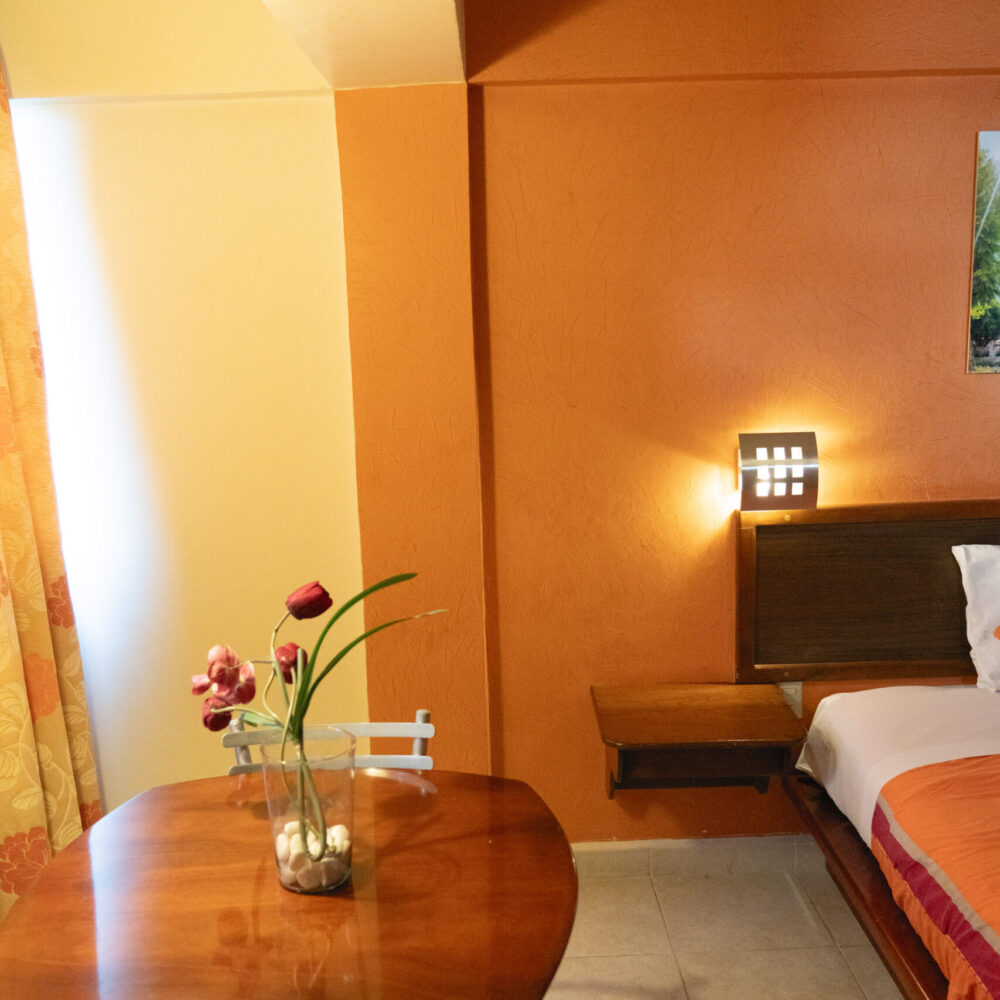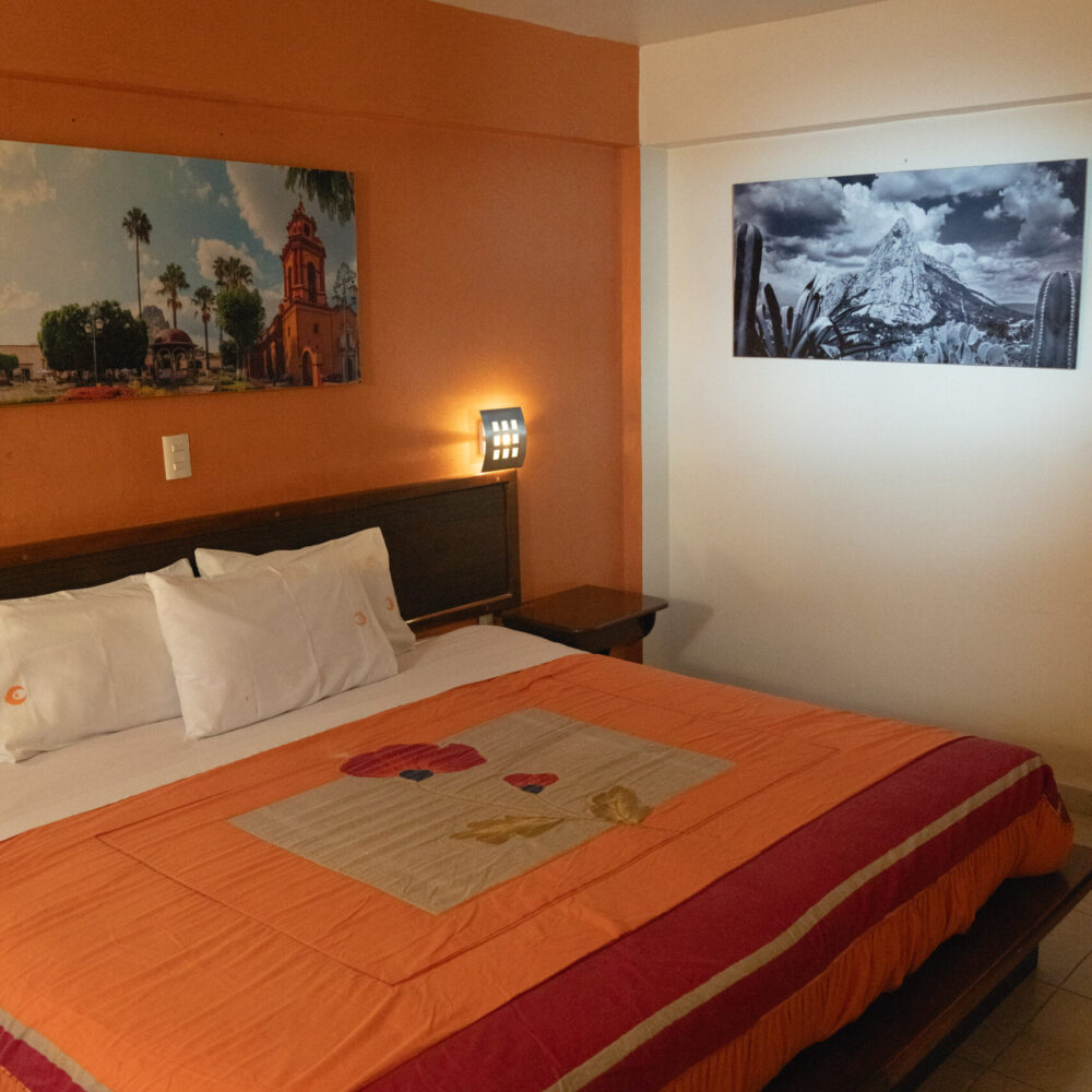 Desde los tonos que evocan la cantera y los detalles arquitectónicos que reflejan la belleza colonial, cada rincón está diseñado para capturar la esencia única de esta joya mexicana. Con dos camas individuales, esta habitación no solo ofrece comodidad, sino también una conexión auténtica con la tradición y la sofisticación de Querétaro.
